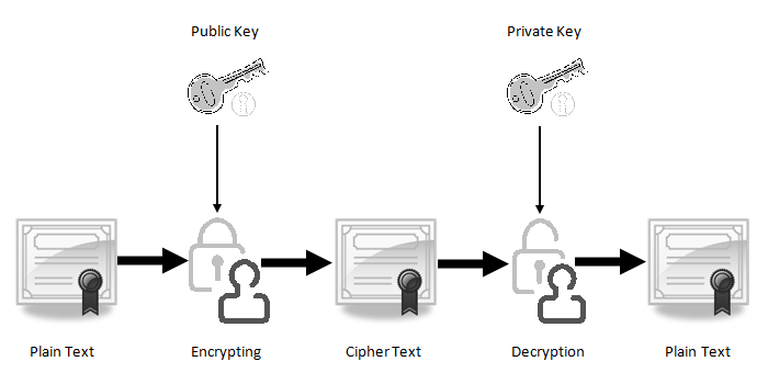 - server가 전달받은 public key로 평문을 암호화하여 client에게 전달